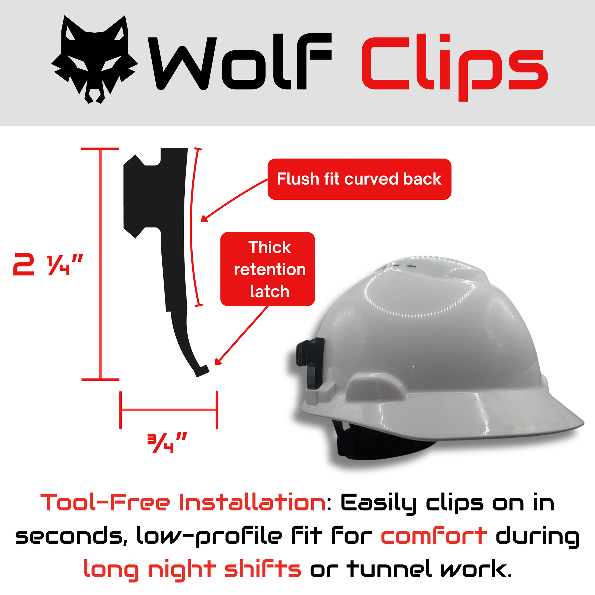 - Easy Installation: Tool-free design clips onto hard hats in seconds, with a low-profile fit for comfort during long shifts.